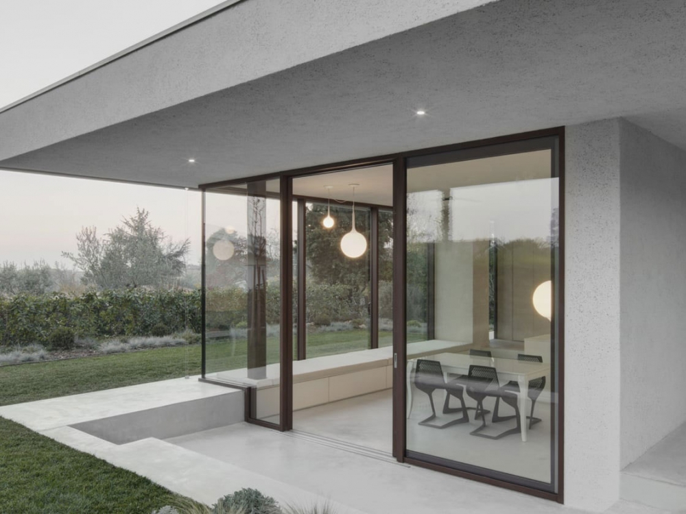 Počitniška hiša se ponaša z jasno in preprosto arhitekturo, za kar je potrebna primerna zasteklitev, ki omogoča zračnost in svetlobo v odprtem bivalnem prostoru z jedilnico.